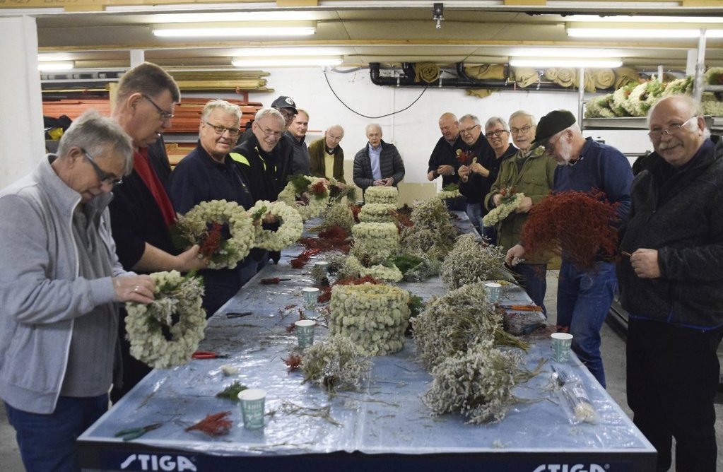 Like sikkert som julekvelden på kjerringa, lager Lions Club Enebakk julekranser. Sist torsdag var 17 karer samlet i prestegårdslåven i Kirkebygda